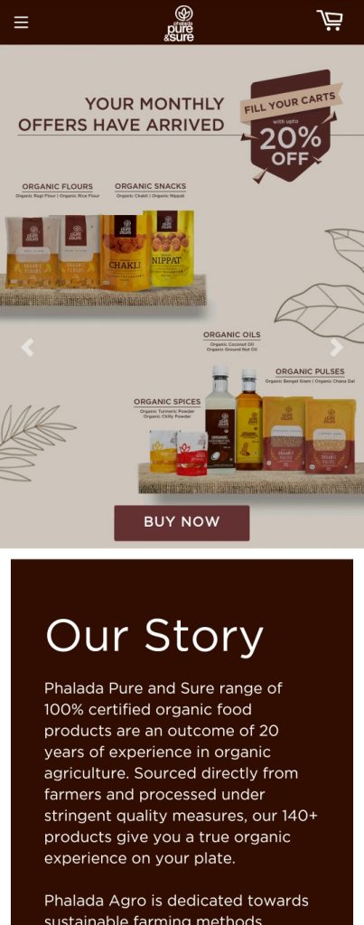 Phalada Pure and Sure range of 100% certified organic food products are an outcome of 20 years of experience in organic agriculture. They have 140+ products that give you a truly organic experience on your plate.
